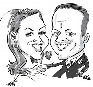 caricature of wedding couple
